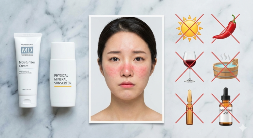뜨거운 물 세안이나 강한 마찰은 즉각적인 홍조를 유발합니다.