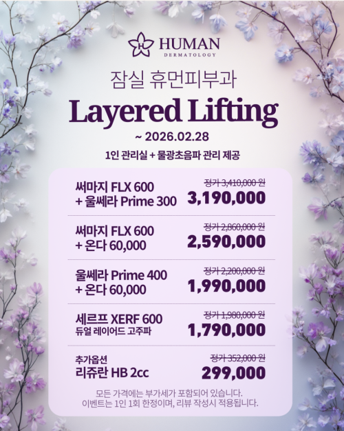 공지사항 잠실휴먼피부과 레이어드 리프팅 이벤트(~2026.2.28)